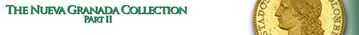 There is no greater example of this liberation in coinage design than the “Libertad Americana” design, of which the collection features the finest known Bogota 1819JF silver 8 reales example. In fact, we like this coin design so much that the bust will feature prominently on a special holder label made by us and NGC specifically for the Esmeralda Collection.Other key coins in the collection include a Bogota 1826JF gold 4 escudos graded NGC MS 64 pedigreed to the Louis Eliasberg and Richard Lissner Collections as well as a Bogota 1819JF silver 2 reales struck over a Cartagena imitation cob plated in Emilio Restrepo’s Coins of Colombia (2012). Indeed, many of the coins in this collection hold pedigrees to prestigious coin collections.